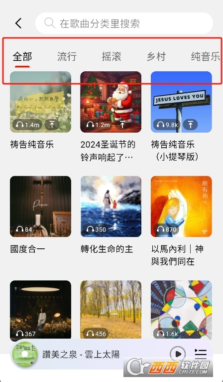 1、“双资源池并行设计”,区别于单一资源导向的音乐软件,该软件采用“大众音乐池+专项赞美诗歌池”并行架构——大众音乐池按风格分类,满足日常泛听;赞美诗歌池按主题、语言、版本分类,支持精准筛选(如“中文感恩主题合唱版”),用户可根据场景快速切换资源池,避免不同类型音乐混杂导致的查找效率低问题。