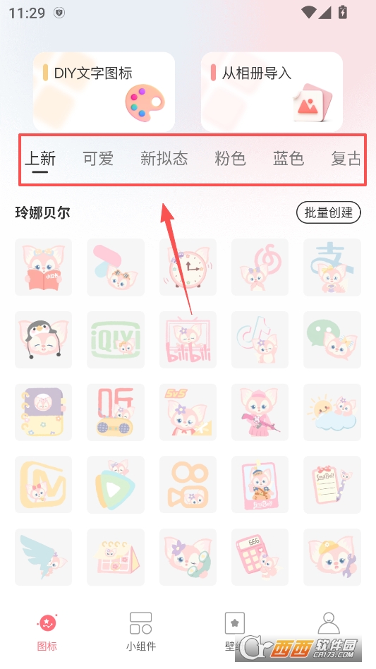 进入软件后主页上方可以根据喜欢切换不同的图标类型