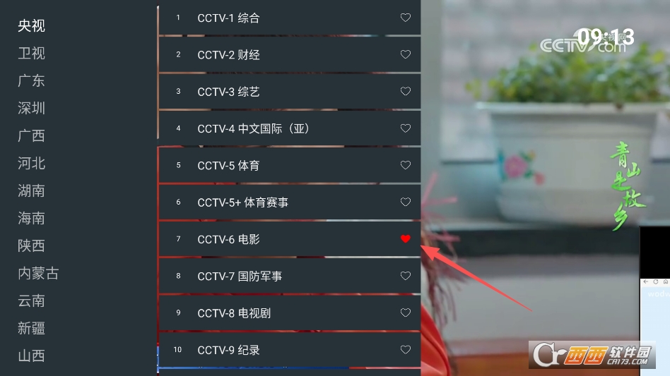 点击想要收藏的频道右侧的爱心按钮即可进行收藏