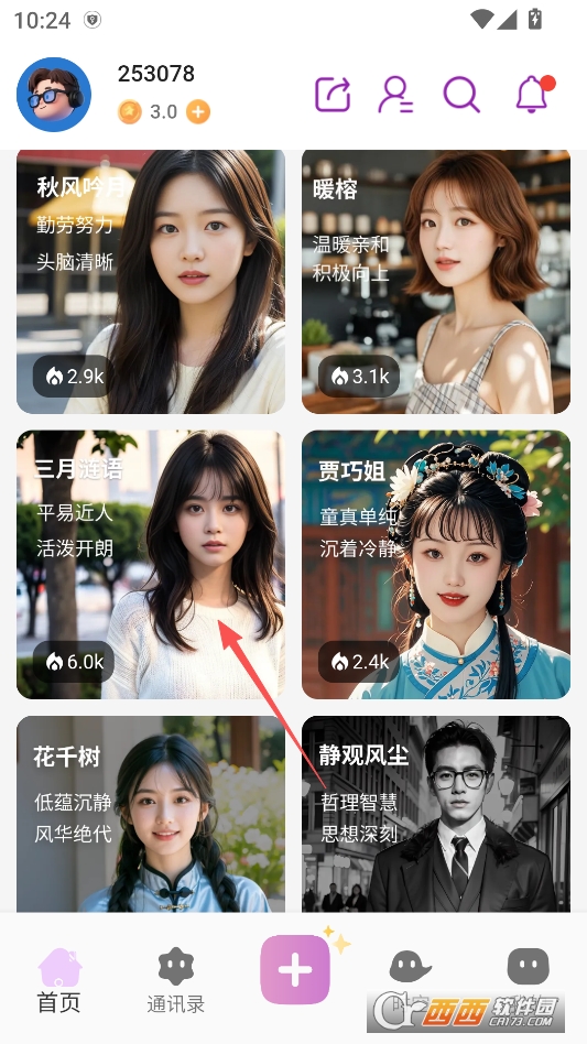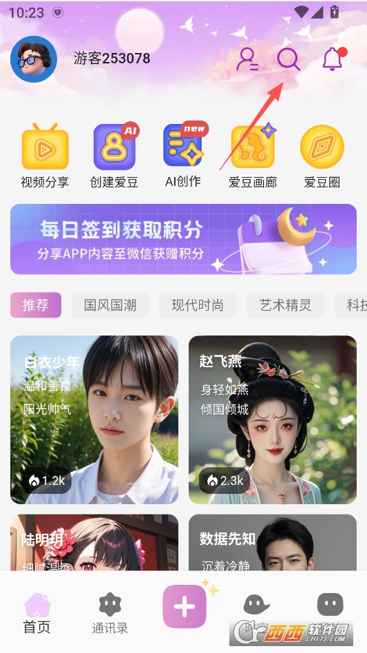 进入软件主页点击右上角输入关键词搜索喜欢的ai角色
