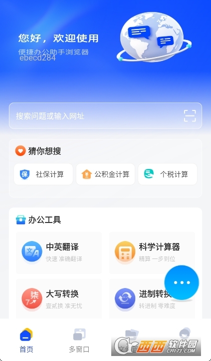 3、操作门槛低,上手无难度:软件界面设计兼顾“浏览”与“办公”两大场景,布局简洁直观。首页左侧为网页浏览区域,右侧为办公工具快捷入口,工具分类清晰(如“计算类”“翻译类”“文件类”),用户可通过滑动或点击快速调用。