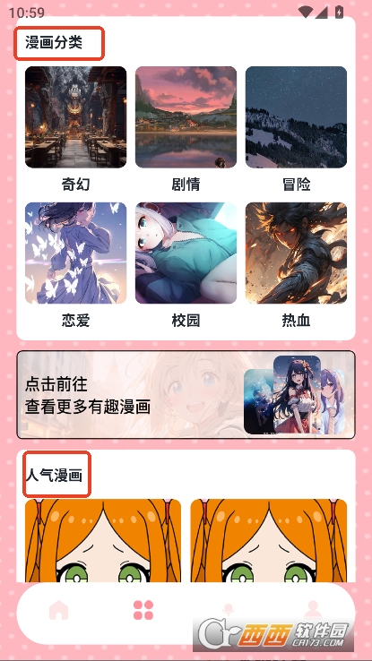 精准的漫画分类体系:针对不同用户偏好,细分男生向、女生向、趣味等大类,再下设奇幻、热血、悬疑、校园等具体题材标签,每个分类下还会根据热度推荐优质作品,方便用户快速定位心仪内容,减少无效浏览。