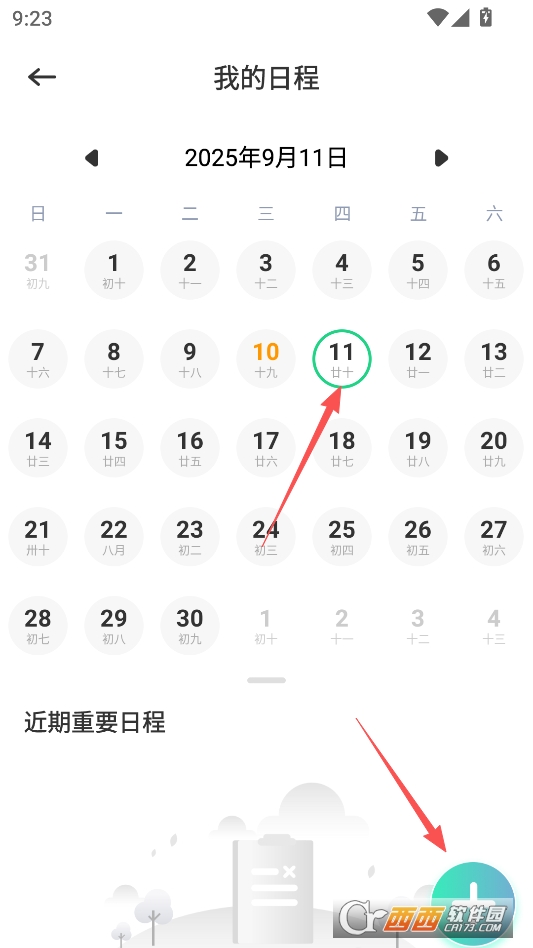 然后在日历界面点击任意日期然后点击右下角+号按钮