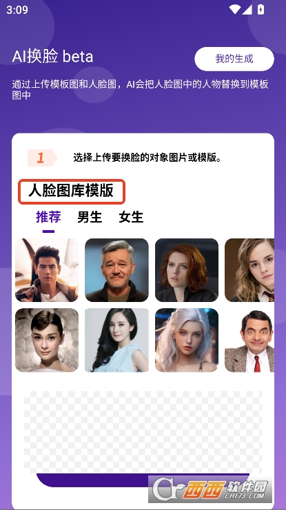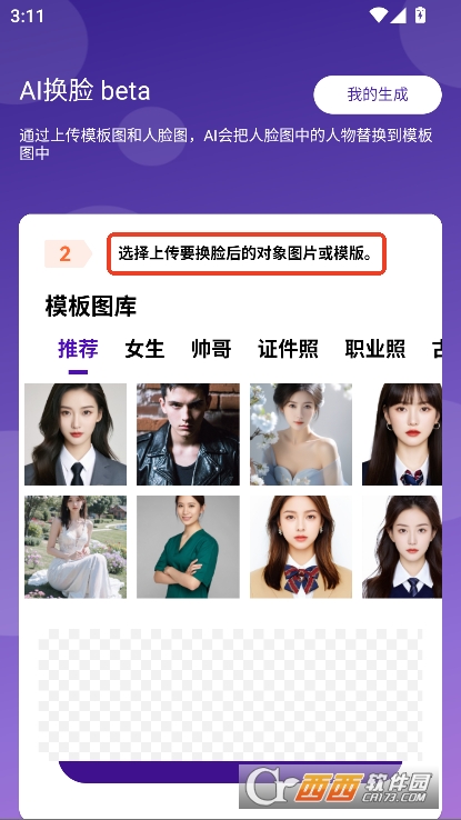 操作流程极简:采用“上传图片 - 选模板 - 一键生成”的三步式操作,每个步骤都有清晰提示,如上传图片时标注支持格式,选模板时分类明确,无需专业技术,普通用户几分钟内就能快速上手完成换脸。