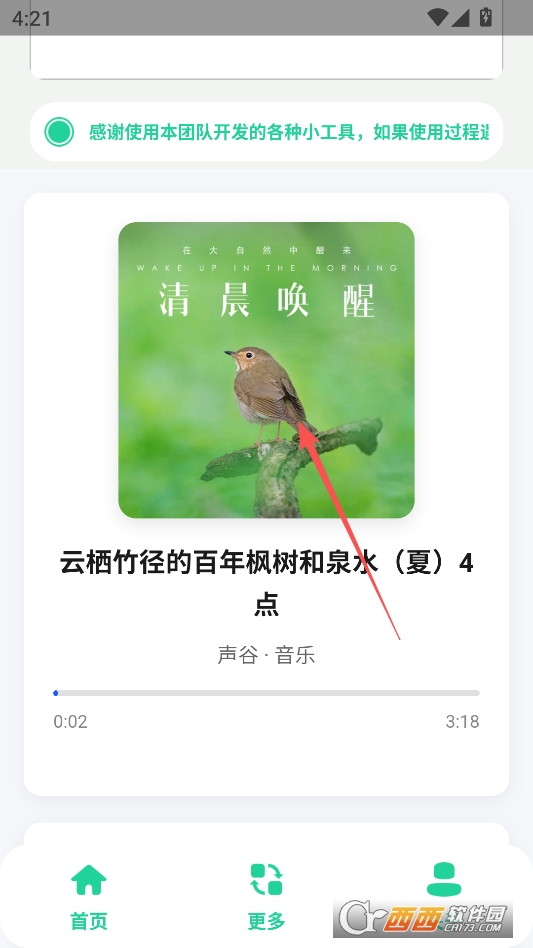 “沉浸式场景感强,代入感足”也很亮眼。播放声音的时候,还会搭配对应的静态背景图,比如播放“森林钢琴”时,背景是郁郁葱葱的森林画面;播放“夜雨钢琴”时,背景是雨夜窗户的场景。看着画面听着声音,就像真的待在那个环境里,不会觉得单调,能更快沉浸进去,忘记外界的干扰,专注于放松或入睡。