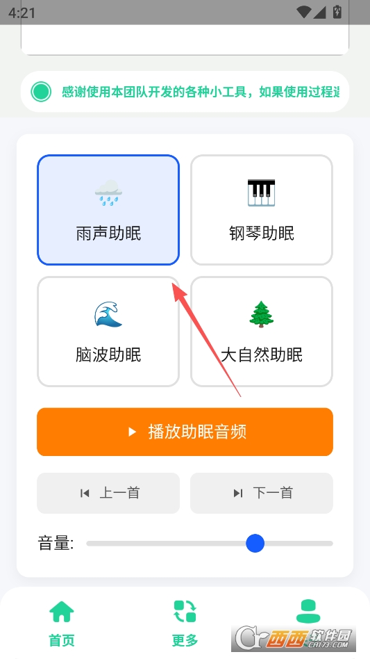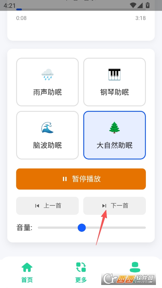 进入软件主页后可以点击选择四种不同的助眠音乐类型