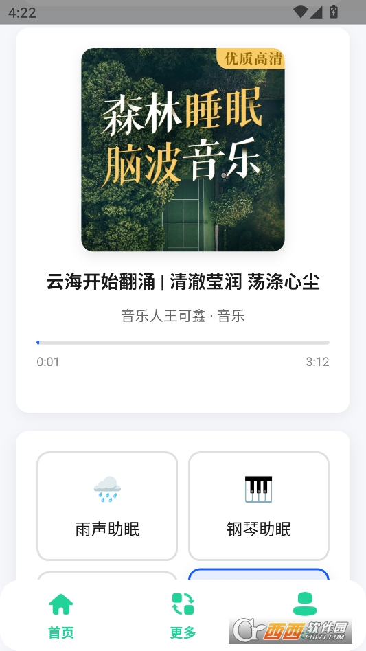 第一个亮点是“声音组合超治愈,氛围感拉满”。很多助眠软件要么只有白噪音,要么只有纯音乐,听久了容易腻。而这款App把自然白噪音和治愈钢琴音结合,比如下雨声搭配缓慢的钢琴旋律,海浪声配上轻柔的琴键音,两种声音融合得特别自然,就像有人在雨天为你弹钢琴,一下子就能营造出放松的氛围,助眠效果更好。