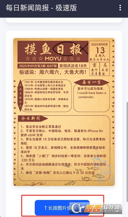 摸鱼早报app是一款专注于“碎片化资讯阅读”的摸鱼日报类移动应用,核心定位是“轻松高效的时事热点获取工具”,专为忙碌人群(如职场人、学生)打造,以“短时间、轻阅读”为核心,整合多元新闻资讯,让用户在“摸鱼”间隙快速掌握时事热点,无需花费大量时间筛选信息,满足高效获取资讯的需求。