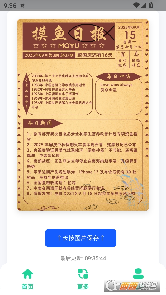 和同类软件比,“摸鱼日报”的“5种新闻接口”优势很明显。很多新闻软件只对接一两个新闻源,内容类型单一,要么只有时事,要么偏重娱乐。而它有5种接口,能整合更多来源的资讯,内容更全面,不管你喜欢哪种类型的新闻,都能在这儿找到,不用下载多个软件补充内容。
