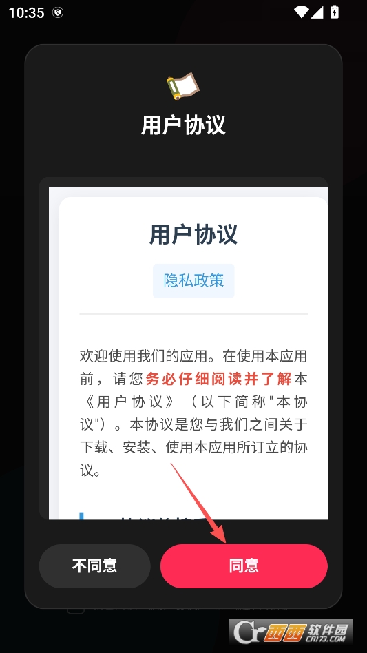 下载好软件后首次打开软件先点击同意