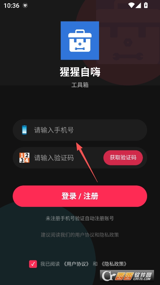然后直接输入手机号通过验证码即可登录,首次登录会自动为你注册