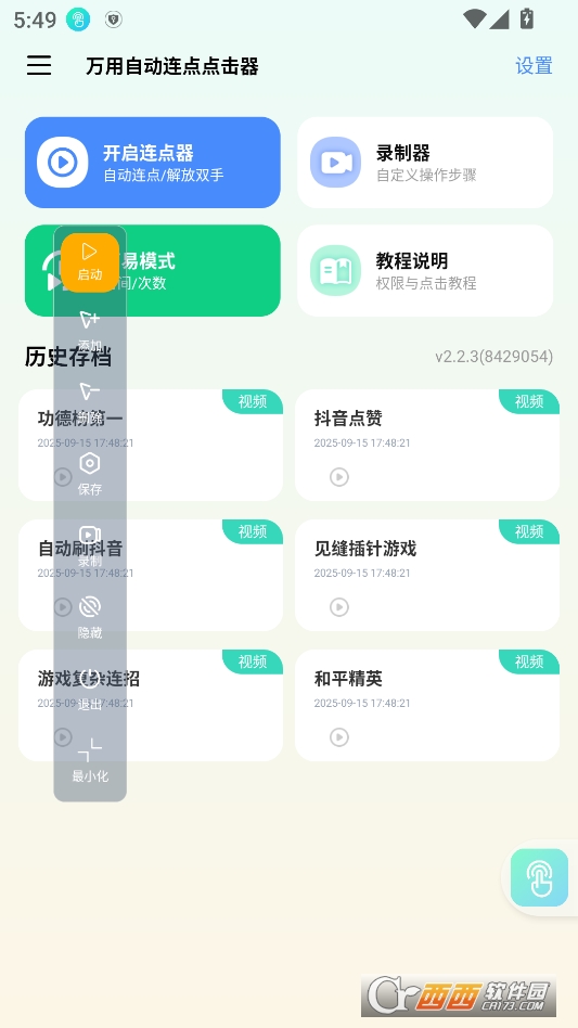 它的功能还特别灵活,不只是能自动点击,连点、手势操作都能实现。比如玩游戏时需要每秒点十下屏幕,用它设置好连点频率就能自动完成;刷任务时需要滑动屏幕、点击特定位置,也能提前录好手势,让软件按步骤执行,各种重复操作都能搞定,有需要的话就快来下载体验吧。