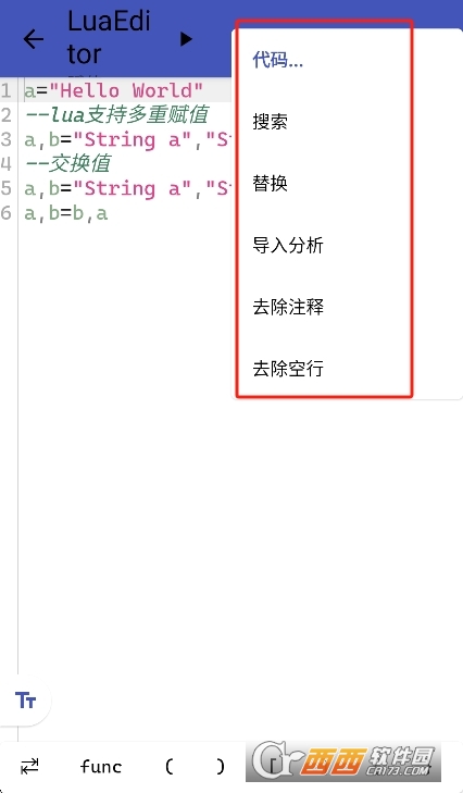 3、移动开发便捷,打破场景限制。让开发人员摆脱电脑束缚,在手机上即可完成Lua代码的编写、调试与运行:外出时可快速修改紧急脚本,通勤时能构思代码逻辑,无需等待回到电脑前;支持代码云端同步(如同步至个人云盘),电脑端编写的代码可在手机端继续编辑,实现多设备无缝开发,适应开发人员灵活的工作场景。