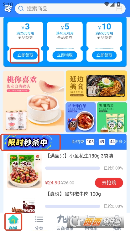 九州云商app正式版客户端是一款便捷实用的线上电商购物平台,拥有海量在线商品资源,涵盖米面粮油,延边美食,滋补保健,特色零食,珍味菌类,酒水茶饮,日用百货等多种类型,每日提供显示特价秒杀与专属全场满减优惠券。同时软件还内置了云商奇旅游戏,通过玩游戏可以获取各种类的优惠券与福利,满足不同用户的购物使用需求。