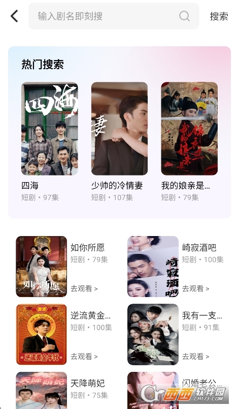 2、顶部搜索栏支持输入剧名、演员名、题材关键词快速找剧