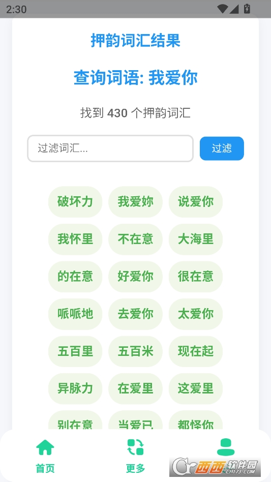 其次适合音乐创作人,不管是写原创歌曲填歌词,还是给现有旋律配词,都需要歌词有韵律感。比如副歌部分要反复押韵才能朗朗上口,找不到押韵词就会让歌词显得平淡。用这款软件能按歌词里的关键词找押韵词,还能对比不同词的意境,选出最贴合歌曲风格的,让歌词更有感染力。