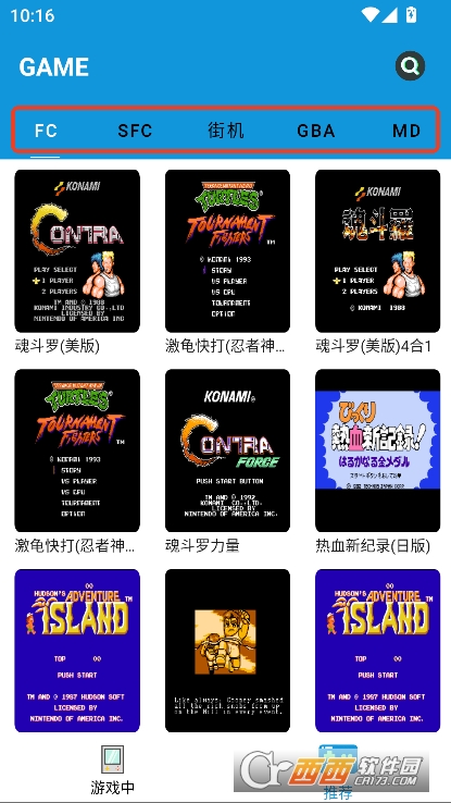 多平台游戏兼容:Fc街机模拟器支持 FC、SFC、街机、GBA、MD等多平台游戏,内置超5000款经典游戏,涵盖动作、冒险、角色扮演等多种类型,像《超级马里奥》《魂斗罗》《拳皇》《塞尔达传说》等热门IP游戏均有收录,玩家可按平台、热度、类型分类查找或直接搜索目标游戏。