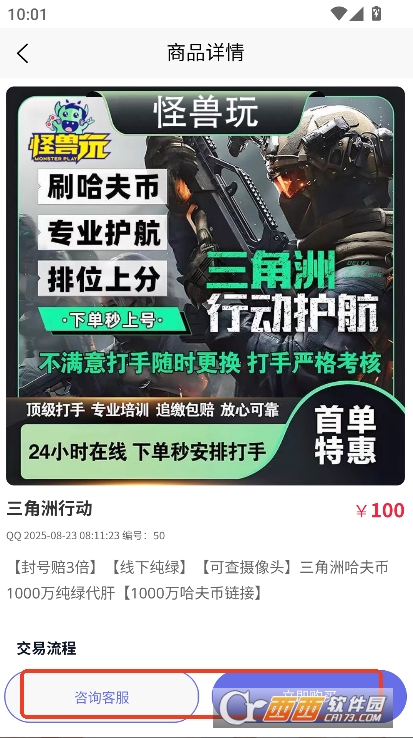 怪兽玩app安卓版官方下载是一款专为热门游戏《三角洲行动》打造的辅助陪玩代练平台,内置多样化的游戏内容服务,可根据区服,哈夫币数量,游戏币比例,账号KDA,特勤处等级等条件进行筛选分类,点击需要的服务内容就能查看详细的服务介绍 ,可以通过平台咨询客服或者直接下单购买,个人中心可以快速查看订单内容与发布租号订单,满足不同用户的使用需求。