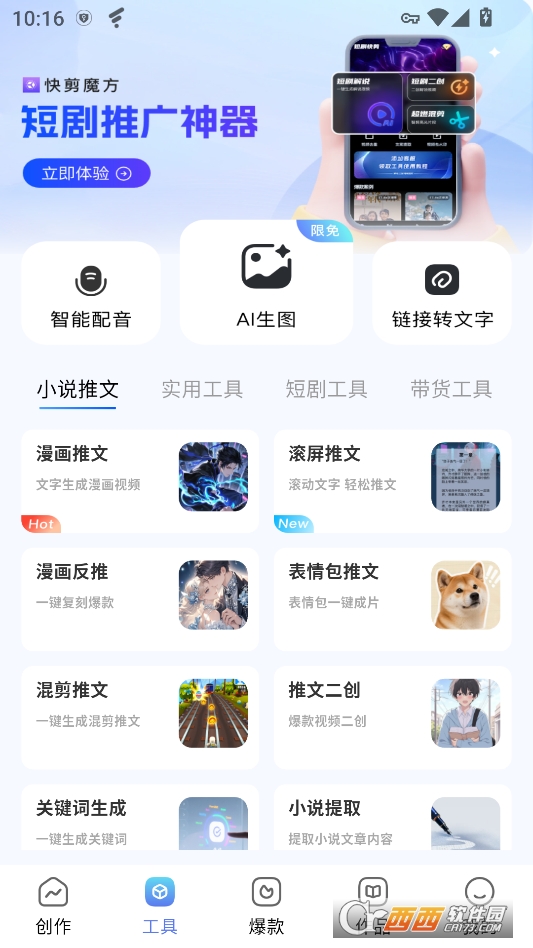 第一个主打功能是“一键生成漫画推文视频”,这是很多小说推文创作者喜欢的风格。选好小说章节后,软件会自动把文字情节转化为漫画画面,比如小说里描写“主角推开神秘门”,会生成对应的漫画场景,还会配上简单的文字气泡突出关键对话。不用自己找漫画素材、画画面,一键就能拿到有故事感的漫画推文视频。