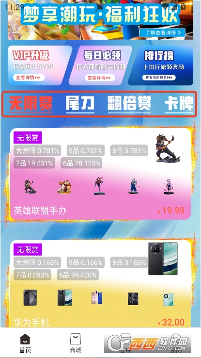 多元开盒互动:支持无限赏、尾刀、翻倍赏等多种特色开盒玩法,设置 “立即开盒” 一键抽奖操作,简化参与流程,同时提供详细中奖纪录查询功能,可查看自身及他人不同品级的中奖情况,增强用户间互动与玩法透明度。