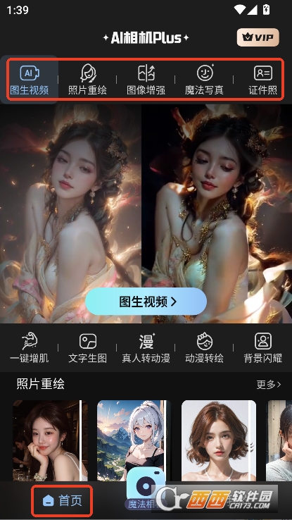 低门槛专业效果:无论是AI写真实现千元摄影大片效果,还是图像增强修复模糊照片,均采用一键操作设计,用户无需专业技术,即可快速获得高质量、高创意的图像作品,降低创作门槛。