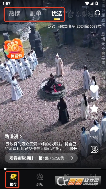 东梨短剧app安卓版官方下载是一款无需会员畅享追剧的免费在线播放软件,汇集全网最新的热门影视短剧资源,涵盖古言现言,都市情感,穿越重生,武侠仙侠 ,战神龙王,亲情校园等多种题材分类,支持关键词快速搜索直达。每天都会更新热门剧集推荐,优选精品剧单,实时更新热度排行榜单,为用户打造便捷舒适的追剧看剧环境 。