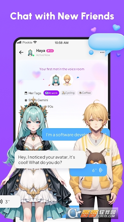 Pookie ai软件是一款主打“虚拟形象+全球社交”的互动社交软件,核心定位为“二次元向跨地域虚拟社交空间”,专为喜欢二次元文化、渴望打破地域限制的用户打造,适用于虚拟形象创作、全球同好互动、二次元话题交流等场景,打破传统社交“地域阻隔、形象单一”的局限,带来充满创意的跨地域虚拟社交体验。