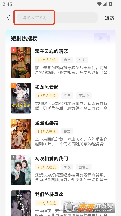 题材全覆盖:聚焦都市情感、古装玄幻、悬疑推理、青春校园等多个热门短剧类型,无论是甜宠、复仇、重生还是励志题材,均能精准匹配不同年龄、性别用户的追剧偏好,无需切换多平台即可满足多样化内容需求。