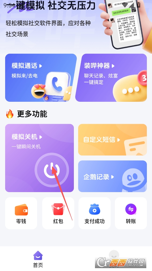 大家进入主页后可以直接点击使用提供的所有功能,以模拟关机功能为例