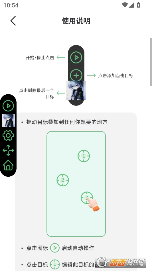第一个主打功能是“多位置自定义连点,精准控制每处操作”。在屏幕上能随便添加多个点击标记,每个标记都能单独设点击间隔、时长和次数。比如玩游戏时,一个标记点技能、一个标记点普攻,分别设不同频率,就能实现技能普攻自动连发,不用自己来回切换点击。