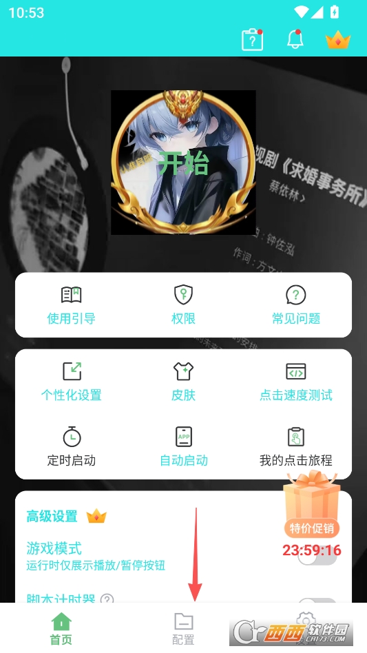 然后点击主页下方的配置选项