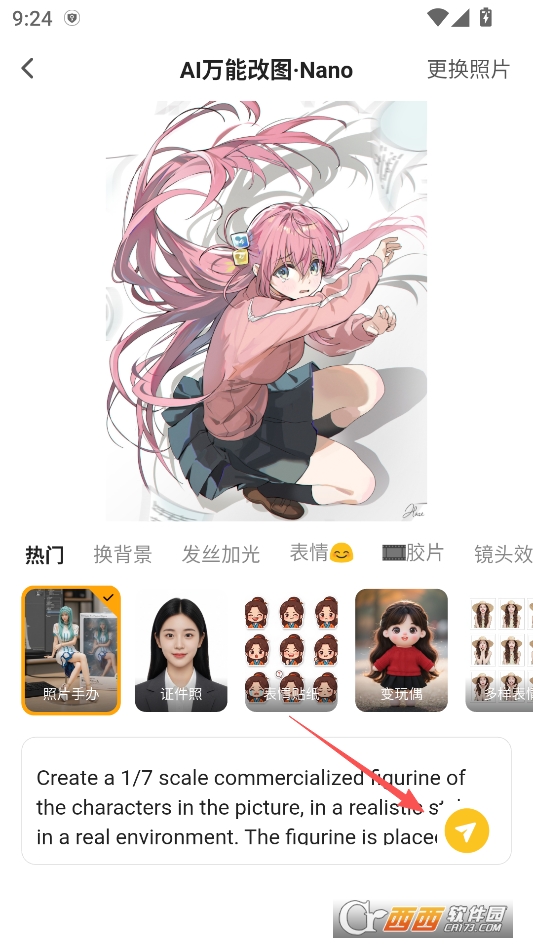 NanoAI官方正版的功能覆盖特别广,从基础修图到创意设计都有。想把照片里的杂物去掉,用AI消除几秒就能搞定;想换个好看的背景,AI换背景一键生成;甚至想给自己换套衣服、拍张AI写真,在这儿都能实现,不用再装好几款修图软件。最火的手办化也可以做到。