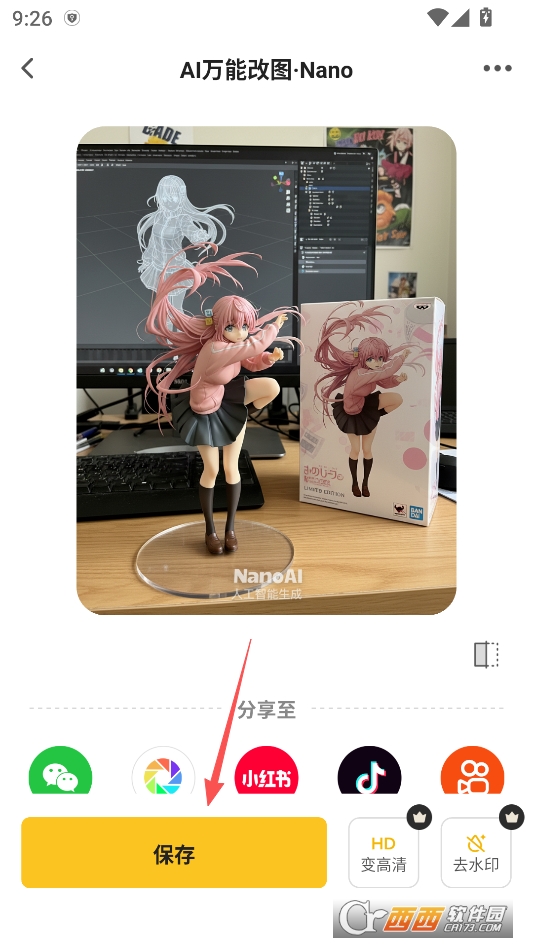 “出图速度快,几秒钟见效果”很让人惊喜。平时用其他软件修张图,调参数、等渲染要半天,“NanoAI”不管是AI消除、AI换装还是AI改图,都是几秒钟就能出结果。比如想把照片里的电线杆去掉,点AI消除选中目标,一秒钟就消失了;想换个天空背景,选好素材点击生成,两秒钟就能看到新效果,效率特别高。