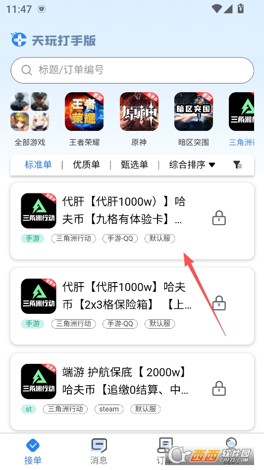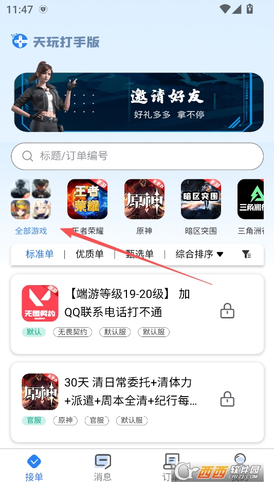 我们进入软件主页之后,先去挑选一下想接单的游戏目标