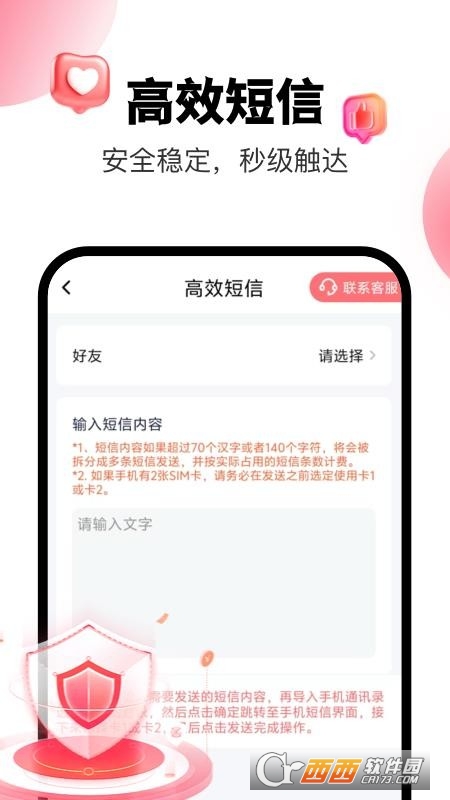2、批量群发操作,支持从手机通讯录选择多个联系人,或手动输入接收号码,一键完成批量发送,无需重复操作。