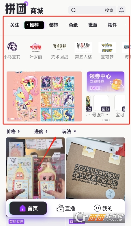 1、二次元周边购物,用户可在平台浏览、购买卡牌、手办、盲盒、吧唧等全类目周边,支持按IP、品类筛选商品,快速找到目标好物。