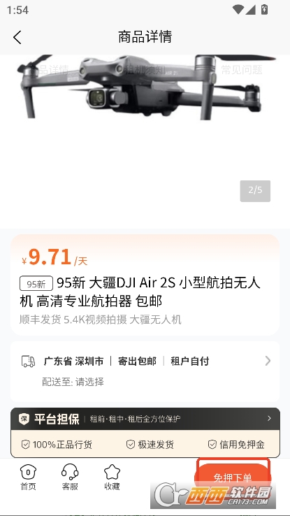 4,点击商品就能获取详细介绍与直接下单免押租赁