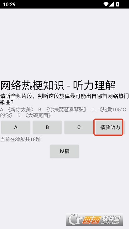 网络梗考试app安卓版下载是一款以网络热点为主题的娱乐答题软件,包含价值选择,梗源追溯,听力理解,图片理解,缩写解析,情绪表达,社交行为等领域分类。进入软件就能直接开始答题,选择系统给出的答案,答对了就能进入下一题,就算答错了也有其他答题机会,帮助用户快速理解网络热梗,打造娱乐体验。