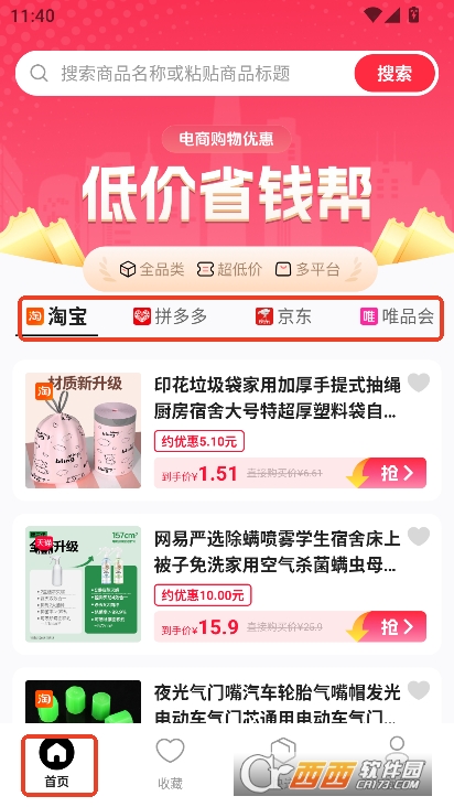全平台优惠聚合:整合淘宝、拼多多、京东、唯品会四大主流电商平台优惠资源,无需切换多个APP,一个平台即可搞定多渠道省钱需求。用户在APP内就能查看不同平台同一商品的优惠对比,无需反复切换账号,节省操作时间。