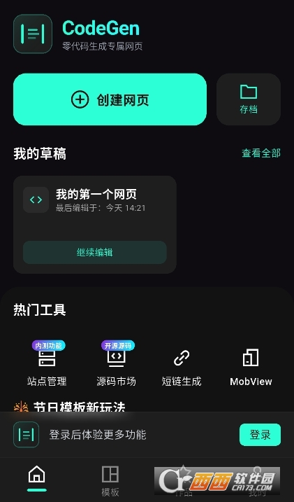 时契网页生成器app官方版下载是一款非常好用的网页生成器软件,提供专业的生成工具,各种模版免费选择,提供多样化的精彩模组使用,还有热门工具,提供营销工具合集,非常受欢迎,感兴趣的小伙伴们欢迎来下载试试吧。