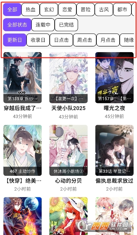 2、资源丰富覆盖广,涵盖几十种漫画题材类型,包括热血、校园、恋爱、悬疑、科幻、古风等,既有热门经典漫画,也有小众优质作品,用户不用在多个平台切换找书,一个app就能满足不同题材的阅读喜好,告别书荒。
