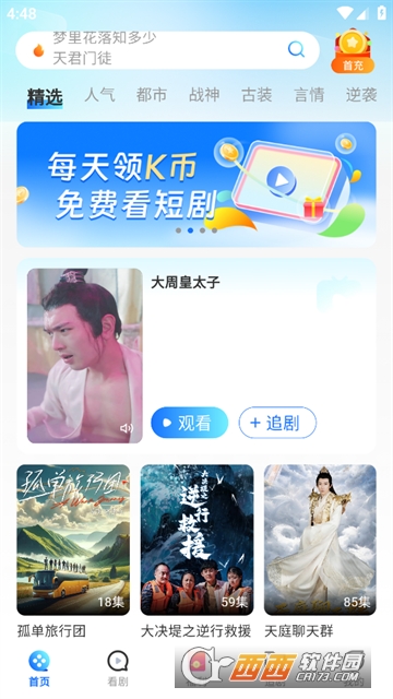 “题材分类清晰,找剧超省心”也很实用。软件把短剧按题材分成了多个专区,每个专区都有明确的标签,比如“甜宠专区”“悬疑剧场”“古风国韵”等。喜欢某类题材的话,直接点进专区就能看到相关剧集,不用在海量内容里翻找,几秒钟就能定位到想看的类型。