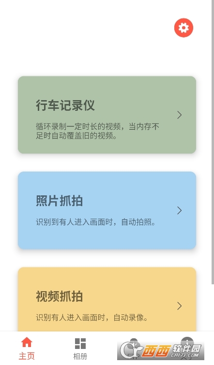 2、操作简单易上手,所有功能入口清晰,比如点击“行车记录”就能直接开启录像,点击“照片抓拍”可快速拍摄,没有复杂的参数设置,即使是不熟悉相机软件的用户,也能快速掌握,避免操作困扰。