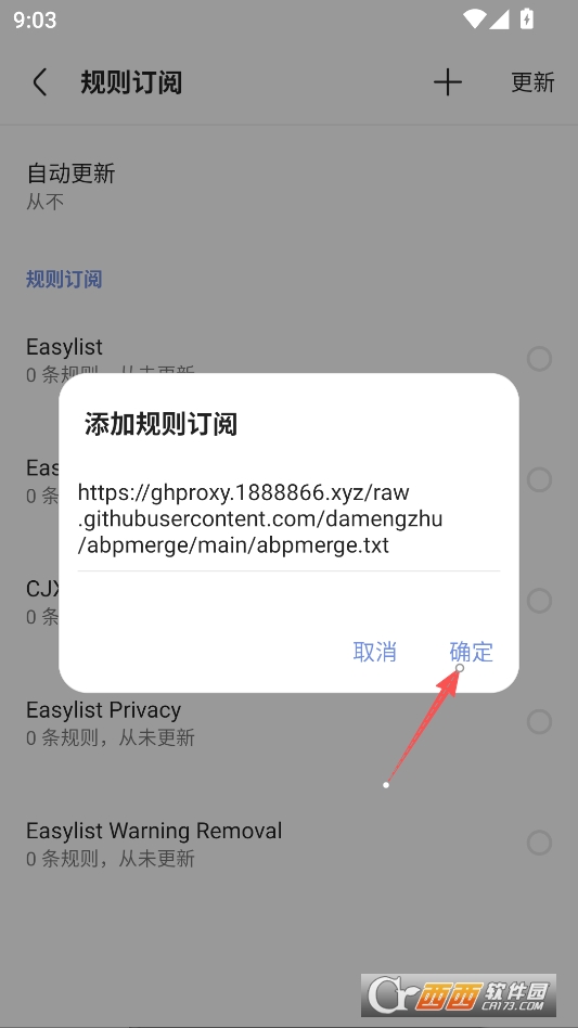 输入规则:https://ghproxy.1888866.xyz/raw.githubusercontent.com/damengzhu/abpmerge/main/abpmerge.txt