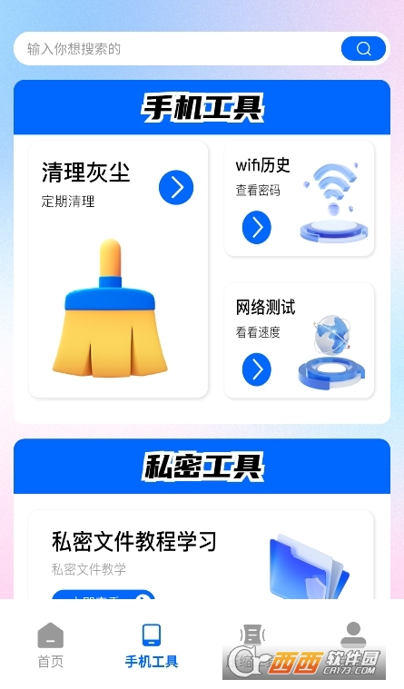 2、界面简洁清晰,工具按类别分区(如“文件处理”“隐私安全”“便捷指令”),每个工具配有明确图标与名称,用户能快速定位目标功能,没有广告弹窗或无关推荐,专注工具服务,使用时不会被干扰,操作体验更清爽。