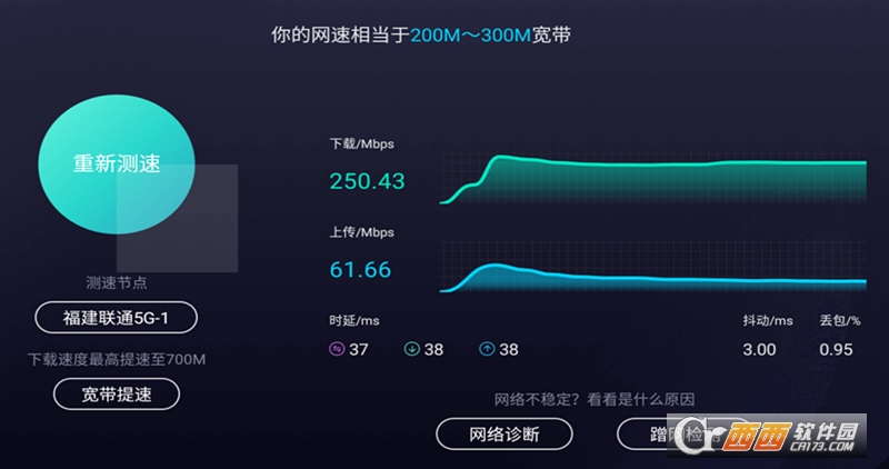 第一个特色是“专属电视适配,数据更精准”。不像普通测速软件是为手机设计的,TV版从界面到功能都针对电视优化,能精准识别电视的网络连接方式,比如是有线连接还是无线连接,连接的WiFi频段是多少。测试时会模拟电视播放视频、加载直播的网络需求,测速结果比用手机测更贴合实际使用场景,参考价值更高。