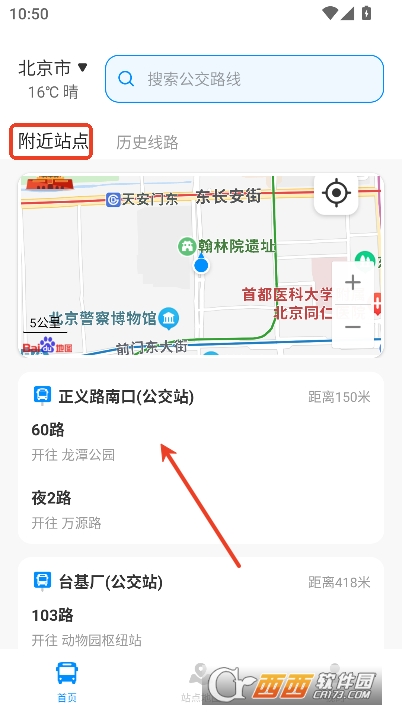 4,还能通过定位地图查看附近的站点信息