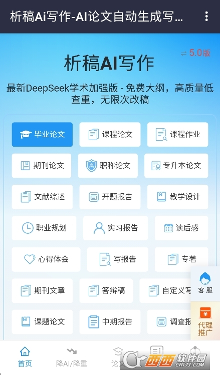 析稿AI软件官方版下载2025版是一款非常好用的精彩ai文章生成器软件,提供专业且丰富的免费文章生成工具,非常实用,涵盖了不同类型的ai写作,包括论文大纲生成、论文ai写作、读后感写作以及更多的功能,非常实用,涵盖了更多精彩亮点内容,感兴趣的就来下载吧。