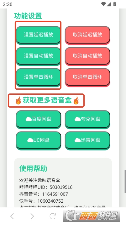 提供获取更多语音盒入口,可通过百度网盘、夸克网盘、UC网盘、迅雷网盘等多平台获取额外资源,轻松拓展语音库,让用户后续能持续获取新的语音内容,避免资源单一。