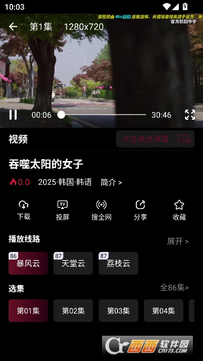 4,点击剧集就能直接在线播放,还支持下载收藏与分享